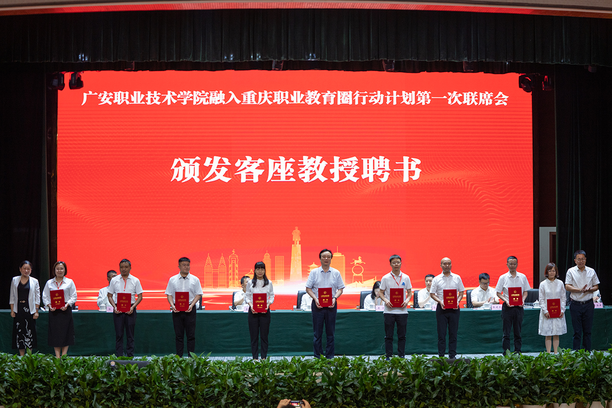 参加会议的还有重庆市教委职成教处相关人员,重庆市5所高校相关职能部门和二级学院负责人,市发展改革委、市教育体育局、市财政局、市人力资源社会保障局、市科技局、市住房城乡建设局、市自然资源规划局、市卫生健康委主要负责人,广安经开区、川渝高竹新区管委会分管负责人,市同城融圈指挥部办公室负责人,以及学校领导班子,校属各单位负责人、学院师生代表等。