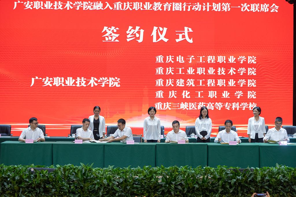 会上,学校党委副书记、校长王义全代表学校与重庆工业职业技术学院党委书记郭天平,重庆建筑工程职业学院党委书记吴国雄,重庆电子工程职业学院党委副书记、校长聂强,重庆化工职业学院党委委员、副校长张荣,重庆三峡医药高等专科学校党委委员、副校长张建忠签署了院校合作协议,明确了2023年度合作重点项目清单,并进行了授牌和客座教授聘任仪式。