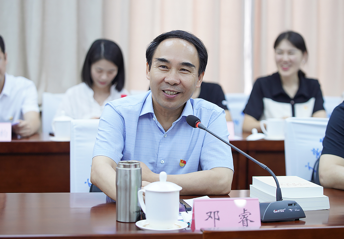 为庆祝中国共产党成立102周年,追寻中国社会主义改革开放和现代化建设的总设计师邓小平同志的青年足迹,牢牢把握主题教育“学思想、强党性、重实践、建新功”总要求,推动成渝地区双城经济圈教育协同发展试验区建设走深走实,7月11日,重庆市教委秘书处党支部、发展规划处党支部、广安市教育和体育局机关党支部与学校机关二支部联合开展“同城融圈连党心,渝广协同建新功”党建活动。重庆市教委一级巡视员邓睿出席活动并讲话。重庆市委教育工作领导小组秘书组秘书处处长罗胜奇,广安市委教育工委书记、市教育体育局党组书记、局长黎均平,学校党委副书记、校长王义全参加活动。活动由重庆市教委发展规划处党支部书记、处长唐樵主持。